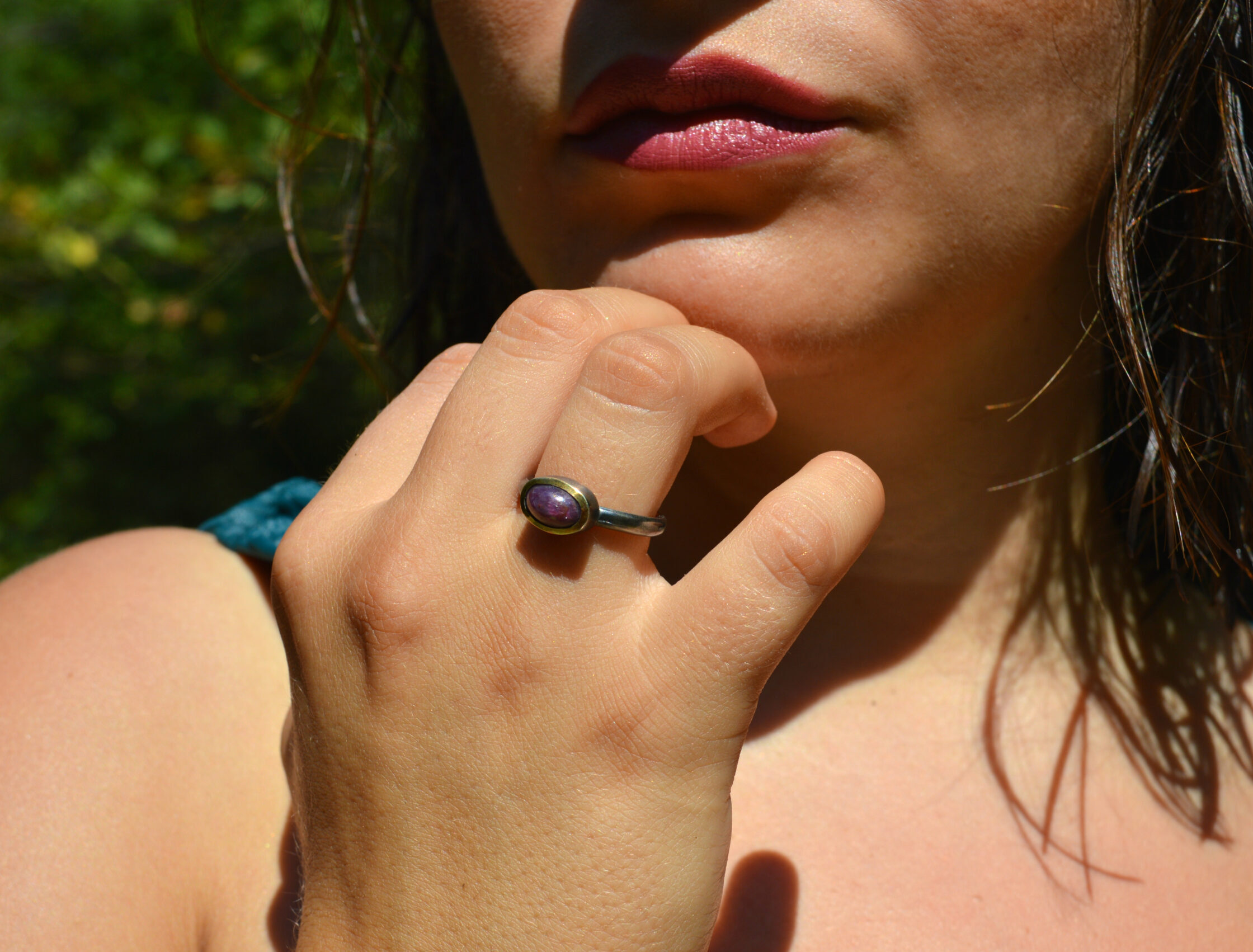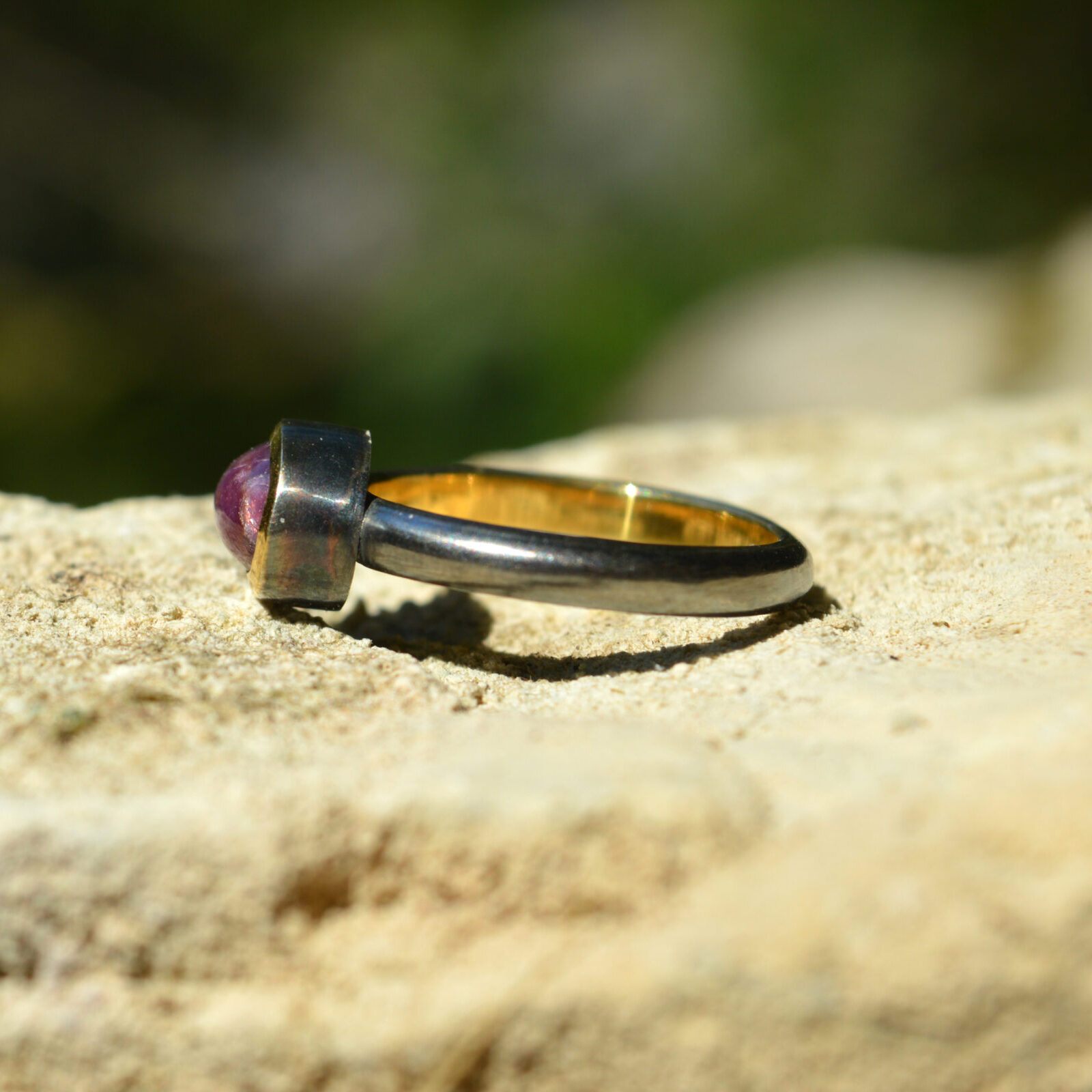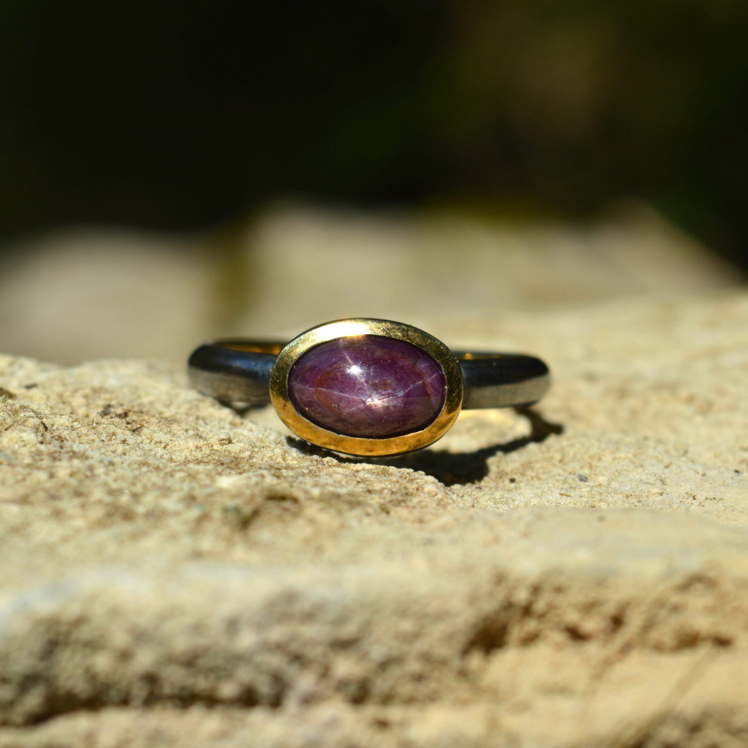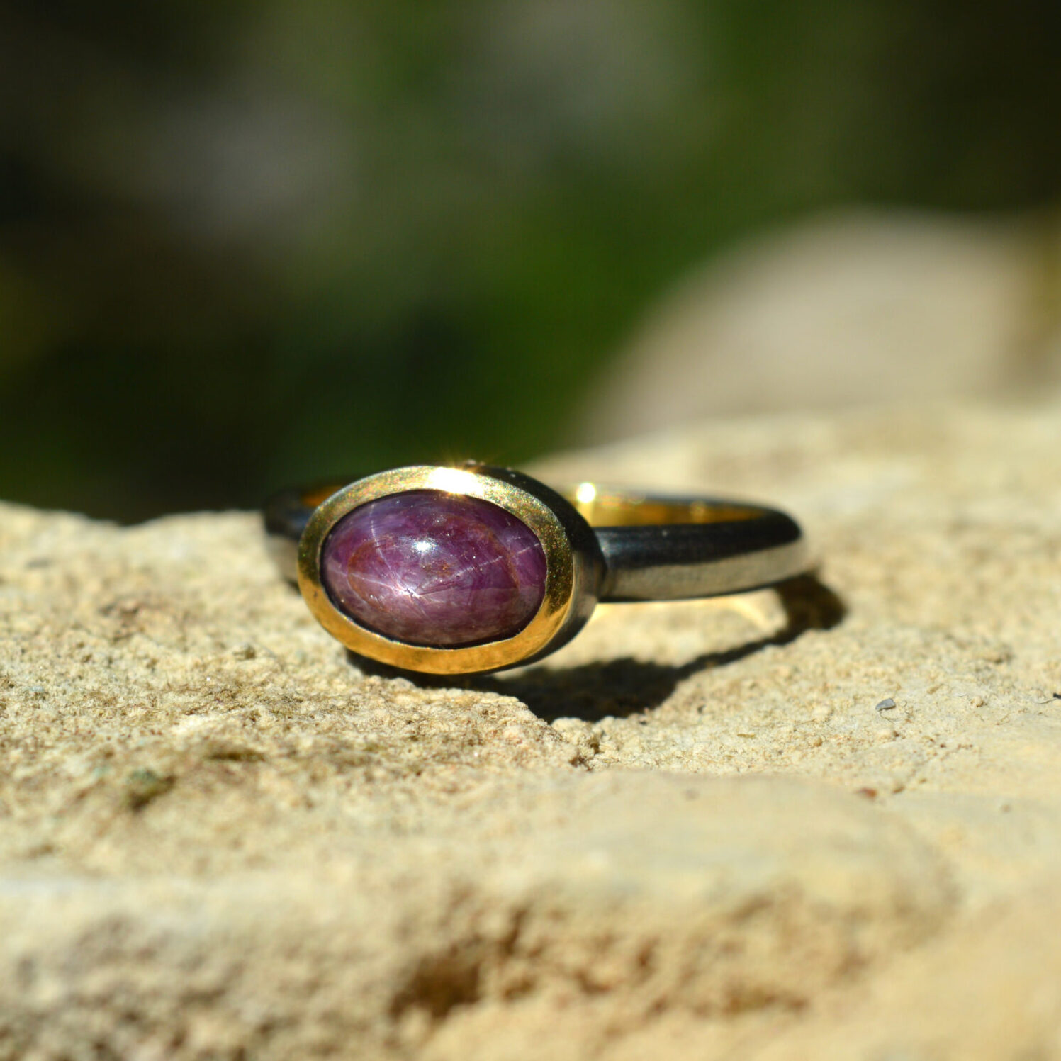 Δαχτυλίδι κατασκευασμένο από ασήμι 925 δεμένο με πολύτιμο λίθο ρουμπίνι αστέρι.