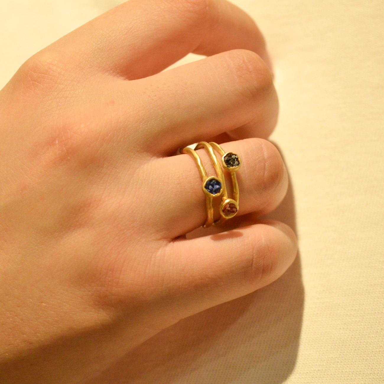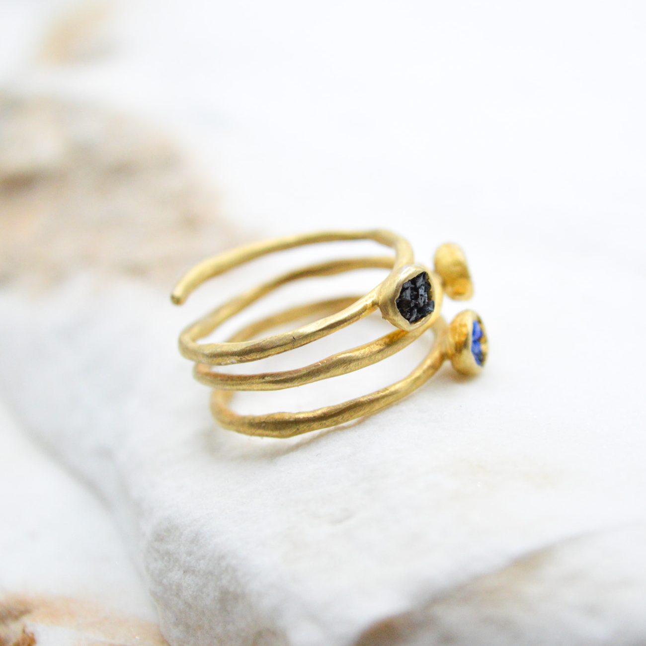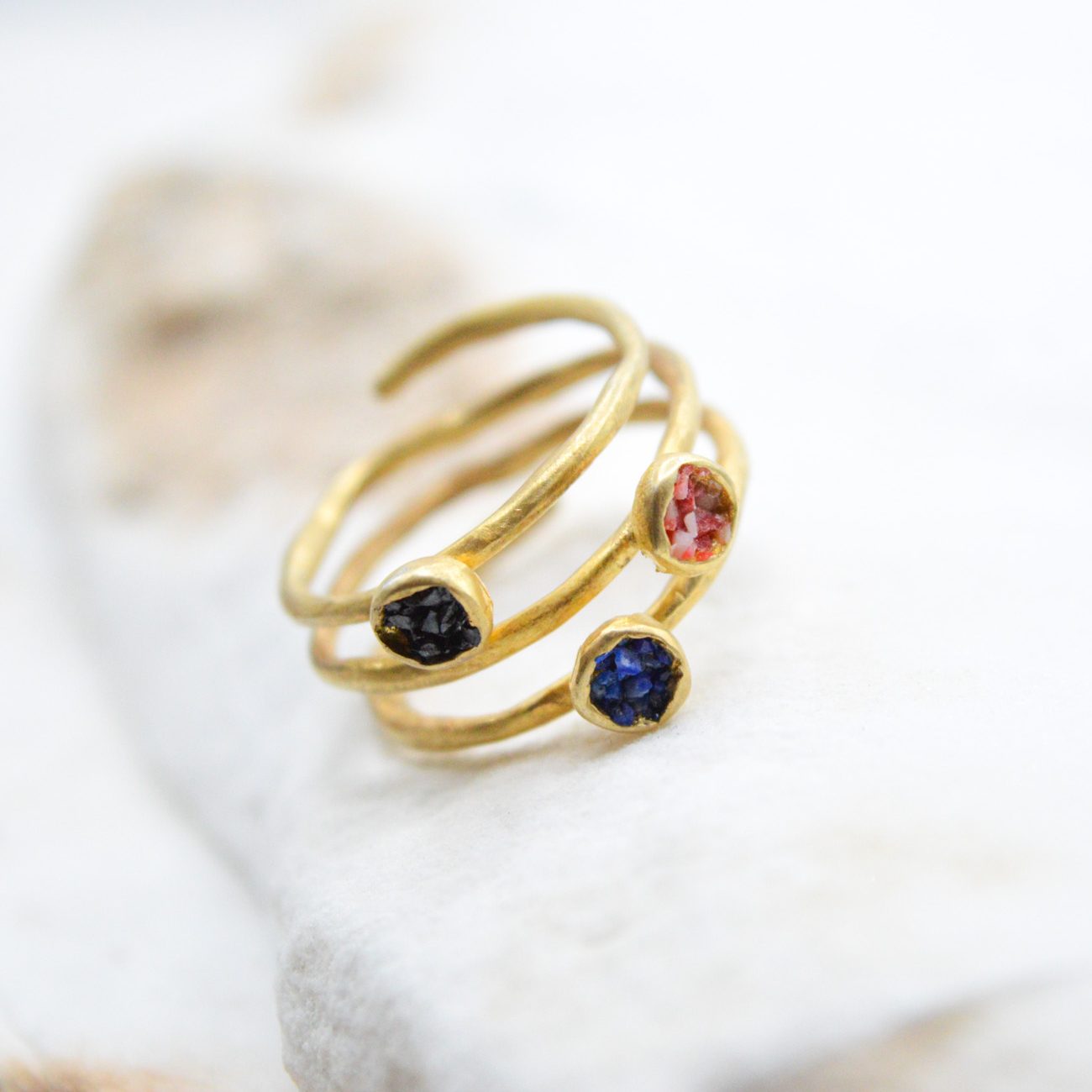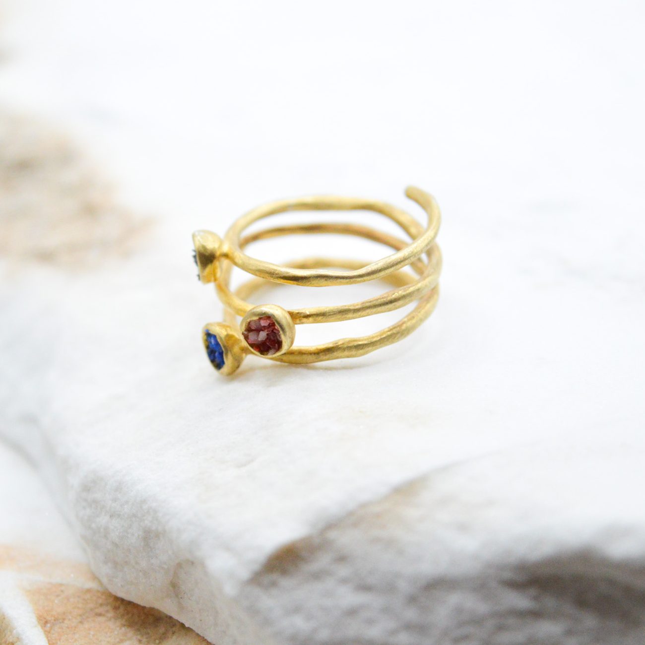 Επίχρυσο δαχτυλίδι με ημιπολύτιμους λίθους Λάπις Λάζουλι, Αιματίτη και Κοράλι.