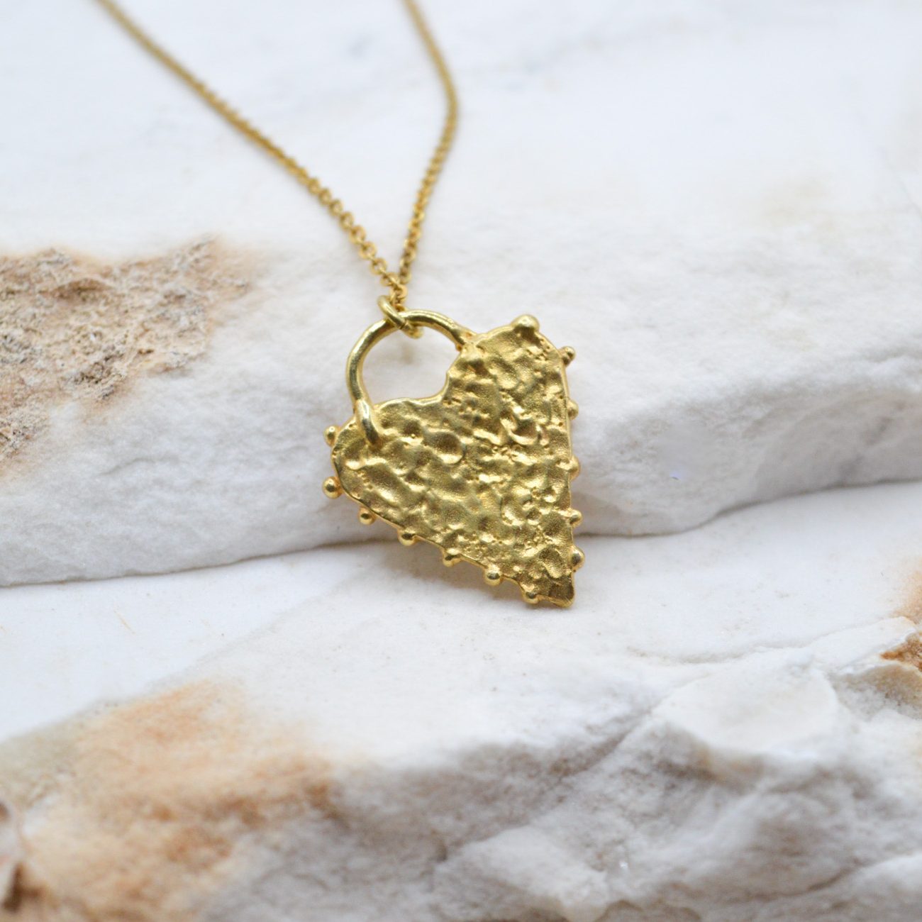 Χειροποίητο επίχρυσο κολιέ με κρεμαστό στοιχείο καρδιά σε χρυσό χρώμα.